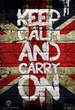 "Keep Calm & Carry On" - Toile moderne n° 0018, Véritable peinture murale Tendances, toile moderne. Un unique 117 x 76cm travaux grande oeuvre d'art dans un cadre galerie de 40mm de profondeur, prêt à accrocher sur un mur.