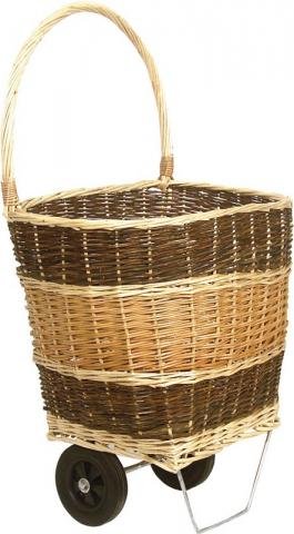 Paniers du monde Chariot à buches en osier brut et blanc, fond bois anti-poussière PRO1650