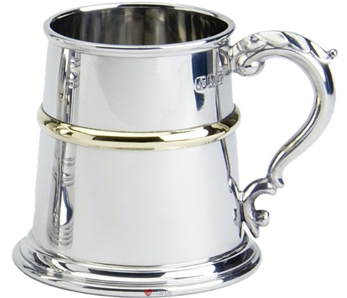 1Pint Pewter Tankard Franklin with Brass Wire . 1 Pint Pewter Tankard - Franklin with Brass Wire Features: * 1 pint capacity * Made in the UK from lead-free pewter * World renowned pewter manufacturers * Comes boxed with a gift box This beautiful tankard in Pewter is manufactured to the highest quality, which makes it an ideal gift you can buy for any occasion or as a treat for yourself. Every Edwin Blyde product comes in gift box. Each Tankard comes with a decorated or plain section which can be engraved on. Pewter products make ideal gifts for many events, Christenings, Weddings, as Trophies, 18th Birthdays, 21st Birthdays, and many more. The craftspeople employed over the years have been of the highest standard, coming from the days when steam power and belt driven motors were used, when candle and oil were the only means of light. Through the torrid times of world wars thankfully to the up to date amenities of the present day, our craftspeople are still here. Edwin Blyde and its employees are proud to be part of this long history and tradition. To this day they produce some of the finest Pewter items such as 1pt Tankard, Half pint Tankard, Salvers, Letter Openers, Money Box, Hip Flasks, Trinket boxes, Pewter Goblets and Flutes, plus many special items. Edwin Blyde produce some of the most beautiful Pewter items currently made. The manufacturing of Pewter and its history goes back to the 14th century. Little has changed in the making process, but standards and designs have evolved to the 21st century. The history of Edwin Blyde: Edwin Blyde & Co. Ltd, whose history goes back as far as the 18th century, has over the years manufactured many of the traditional items associated with Sheffield. From butchers knives and steels to putty knives and garden tools, from pen and pocket knives to spoon and fork. The 'spur' trademark, registered over 120 years ago, was the idea of one of the Blyde family who had been an officer in the cavalry before joining the company. Through the years the company